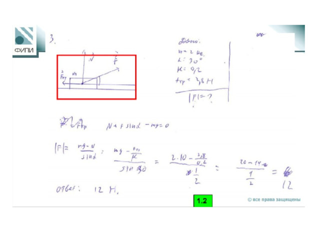 Брусок массой m прижат к вертикальной стене силой F , направленной под углом α к вертикали (см. рисунок). Коэффициент трения между бруском и стеной равен m. При какой величине силы F брусок будет двигаться по стене вертикально вверх с постоянной скоростью?