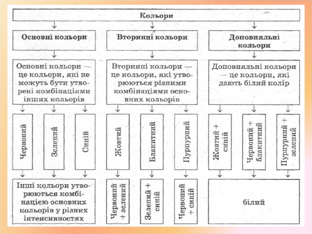 - Колір предметів виникає внаслідок того, що певні кольори світла відбиваються від них