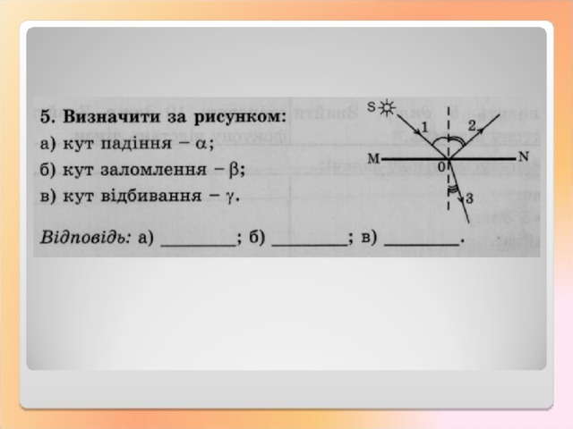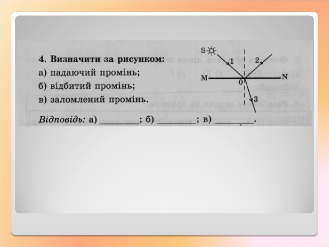 3.Кут між подаючим і відбитим променями 60⁰ . Чому дорівнює кут падіння?