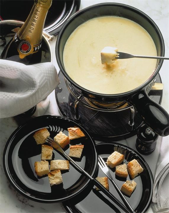 Фондю - это волшебная кулинарная игра, одна из уникальных форм общения. (Фондю изобрели в XIV в. на территории нынешней Швейцарии. Когда швейцарские пастухи надолго уходили в горы со стадами овец, они брали с собой хлеб, сыр и флягу вина. Со временем сыр засыхал, хлеб черствел, и, чтобы не умереть от голода, пастухи разогревали вино и растапливали в нем сыр. Затем обмакивали черствый хлеб. Так родилось классическое сырное фондю).