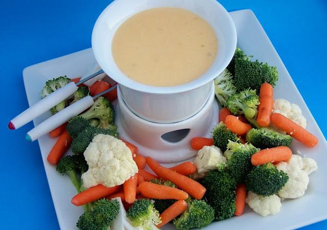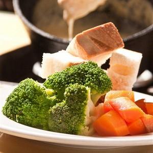 Овощи. Для фондю хороши любые овощи. Свежие, порезанные на кусочки овощи придадут сырному фондю приятный хруст. Выбор здесь велик, всё зависит от вашей фантазии и вкусовых пристрастий: сладкий (болгарский) перец всех цветов, помидорки “черри”, редис, стручки зелёного гороха, молодая морковка, огурцы, молодые початки кукурузы и т.д. Можно использовать отварные овощи: цветную капусту, броколли, брюссельскую капусту, стручковую зелёную фасоль, лук-порей, спаржу и т.д. Отваривать их следует в подсоленной воде, в течение 2-3 минут, чтобы они сохранили «хрустящесть», т.е. до состояния альденте. Перед подачей к фондю такие овощи можно сбрызнуть винным или яблочным уксусом и обвалять в приправах. Кроме того подойдут и маринованные овощи – огурчики, кабачки, баклажаны или кусочки сладкого перца, а также маслины и оливки.