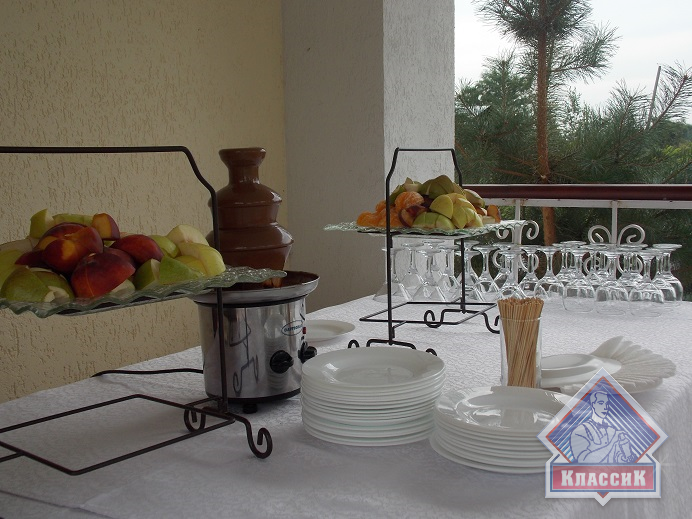 Очень эффектный способ подачи – шоколадный фонтан, представляющий собой конус, по которому шоколад поднимается при нагреве и в виде водопада сливается вниз, где в него можно макать приготовленные кусочки. К сладкому фондю хорошо подавать чай или кофе.