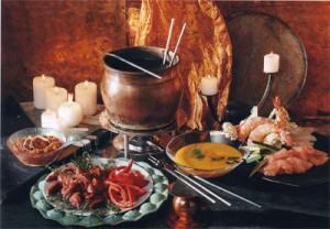 Фондю – это идеальное блюдо и повод для вечеринки и отдыха на природе. И может быть даже достойная альтернатива нашим традиционным шашлыкам. Это еда, которая готовится прямо на столе, в присутствии гостей. Приготовление и поедание фондю – творческий, неторопливый процесс. Оно может быть и десертом (шоколадное, карамельное), и закуской (сырное, мясное, рыбное, овощное). К тому же достаточно просто готовится, чем экономит время хозяйке и способно удовлетворить вкусы Ваших друзей. К фондю подаются кусочки хлеба различных сортов, свежие овощи, сыры и различные соусы. Это вкусно и полезно! Из напитков к фондю подойдут вина, бренди, ром. На семинаре по фондю мы этому научились. Посмотрите, какие красивые и аппетитные блюда получились. А как вкусно!!! Здесь за прекрасно сервированным столом не чувствуешь себя бедным крестьянином. Изысканность, красота и эстетика заставляют представить себя в королевском замке. Хотите быть королями швейцарской кухни?! Приходите – научим!!! Считаю, что изучение и познание особенностей других культур сделает нас сильнее, мудрее, терпимее, образованнее, а главное, мы сумеем вписаться в мир любой культуры, так как все мы – дети одной планеты.