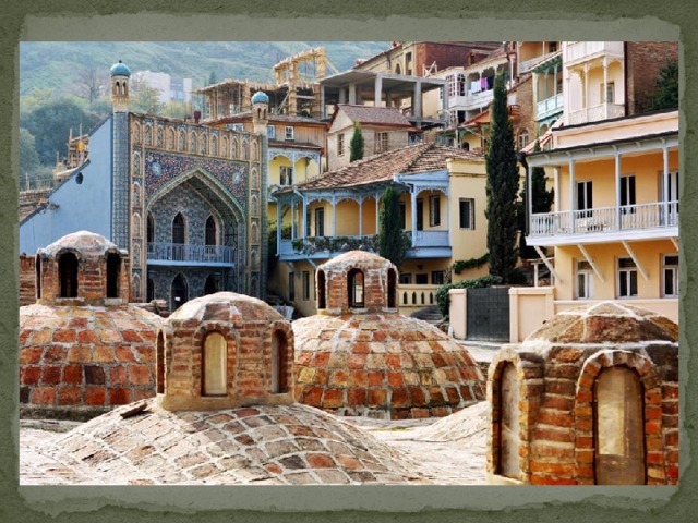 Бани стали элементом местной культуры. Они представляли собой большие полуподвальные помещения, крытые каменным куполом с окном. В самой бане легкий полумрак, сверху падают косые лучи света, блестят изразцы и мрамор. Здесь можно полежать в бассейне с серной водой - холодной или горячей, здесь можно и мыться или делать массаж. Можно посещать баню в одиночку или группой, мыться в общем зале или в отдельной комнате. Так вот, бани вытянуты вдоль русла Цавкисисцкали, которая течет через Ботанический сад и впадает в Куру. В 2013 году реку извлекли из-под земли и красиво оформили набережную.