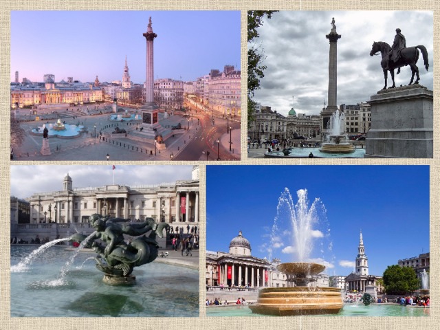 The square was named after the naval Battle of Trafalgar on this site, which was led by Admiral Horatio Nelson. In memory of this outstanding man, a column with a granite monument of Nelson on the summit was erected on the square. The height of the column is 56 meters. Four huge lions of bronze are installed at the foot.