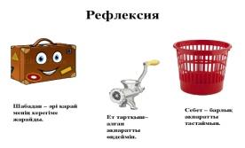 | Әр тапсырмадан кейін бағалау түрлерін жүргізіп отырамын. «Шабадан, ет тартқыш, себет» атты кері байланыс жүргіземін.