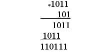 Операция умножения выполняется с использованием таблицы умножения по обычной схеме (применяемой в десятичной системе счисления) с последовательным умножением множимого на очередную цифру множителя.