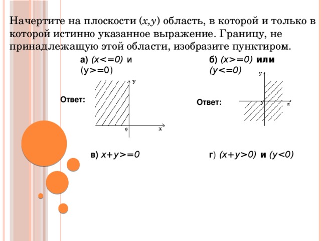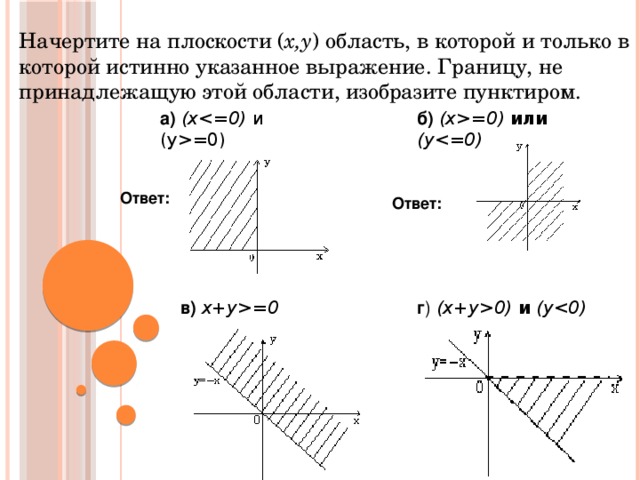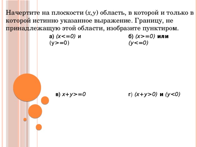 Начертите на плоскости ( x,y ) область, в которой и только в которой истинно указанное выражение. Границу, не принадлежащую этой области, изобразите пунктиром.