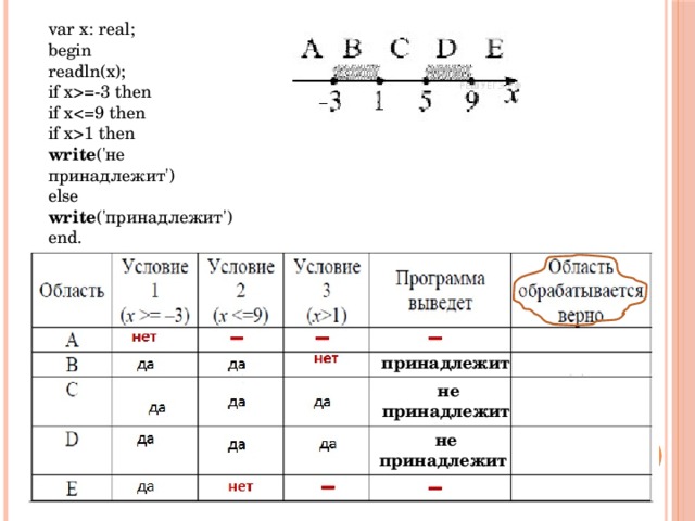 =-3 then if x1 then write('не принадлежит') else write('принадлежит') end. " width="640"