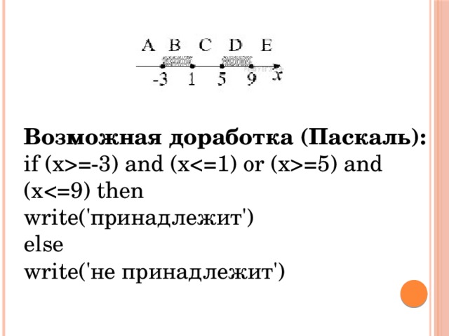 Возможная доработка (Паскаль): if (x=-3) and (x=5) and (x