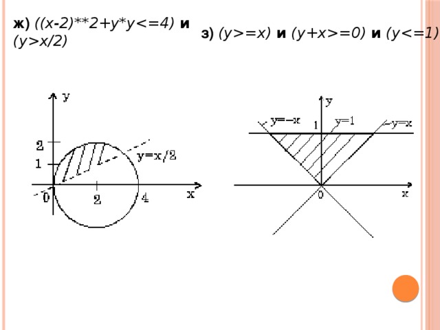 ж) ((x-2)**2+y*y и (yx/2)