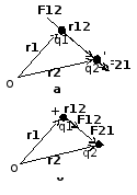 — радиус-вектор, направленный от заряда 2 к заряду 1 (рис. а и б).