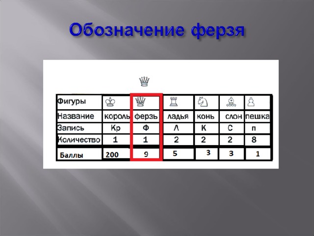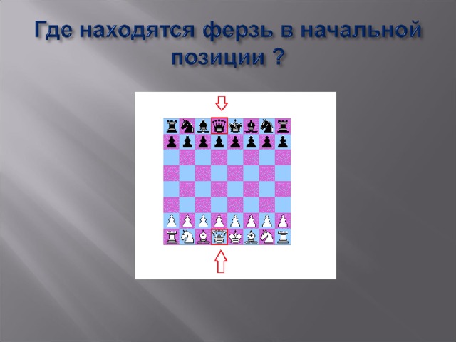 - Ферзь перемещается по вертикали, горизонтали и диагонали.
