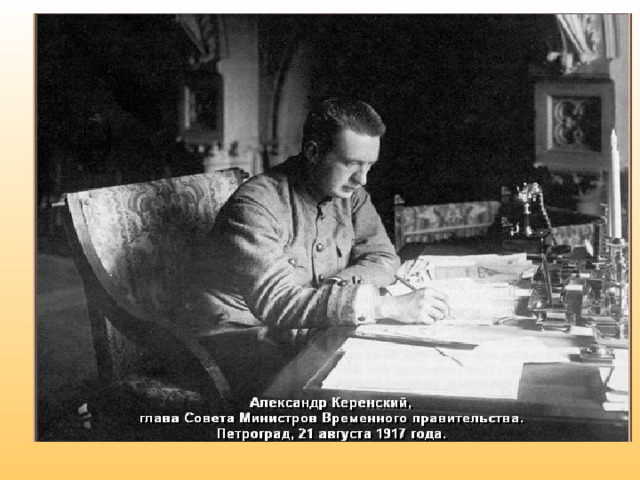 - Неспособность Временного правительства выйти из кризиса вызвала провальный августовский путч главнокомандующего генерал-майора Корнилова и октябрьскую революцию большевиков.