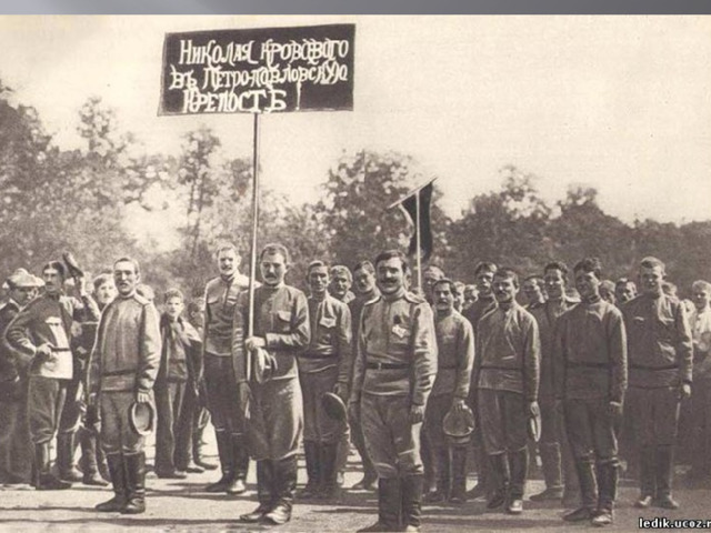 - Партия большевиков вышла из подполья, усиление позиции большевиков, начало большевизации Советов