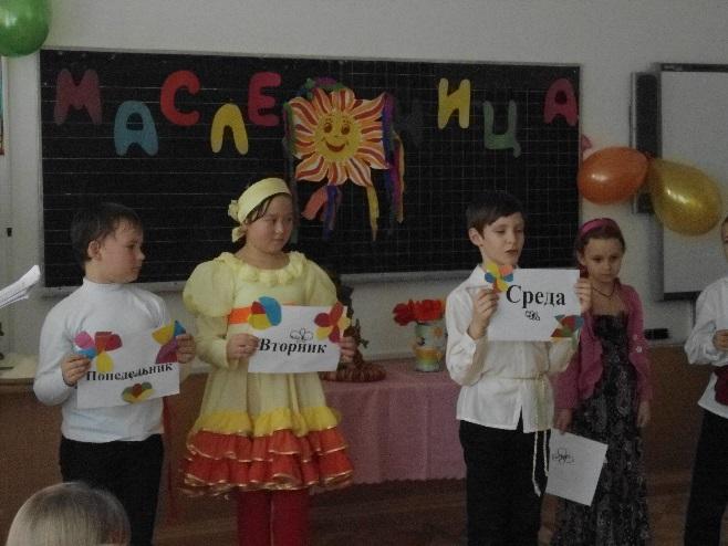 (Выходят дети и на плакатах выносят названия каждого дня Масленицы)