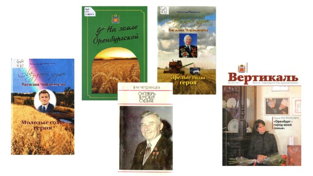 Верность делу хлеборобскому: рекомендательный список литературы о дважды Герое Социалистического Труда В. М. Чердинцеве / ОУНБ им. Н. К. Крупской: сост. Т. Л. Егорова, Н. Н. Факеева. Оренбург, 1985, 10 с.