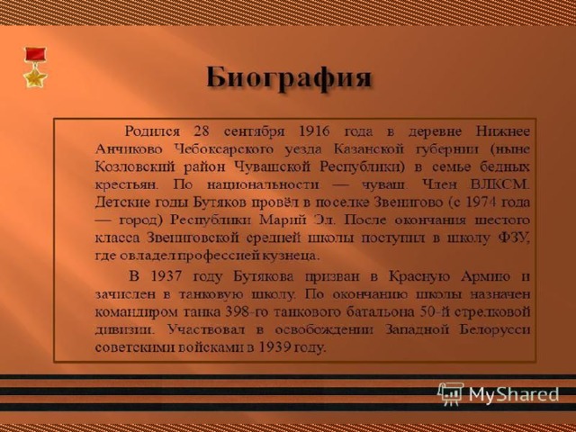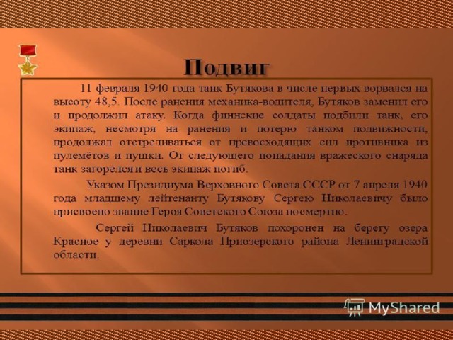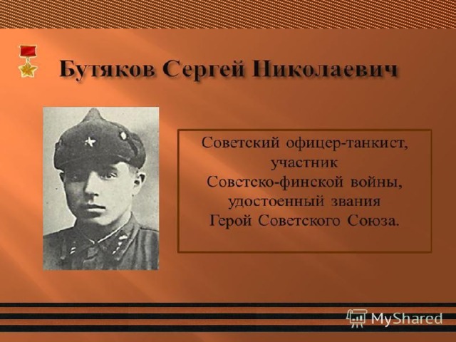 - Рассказать о подвиге Сергея Николаевича Бутякова, прививать уважение к земляку –герою ВОВ.