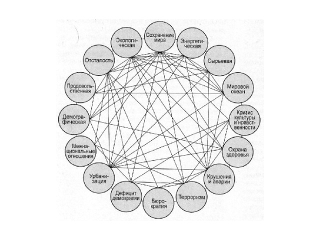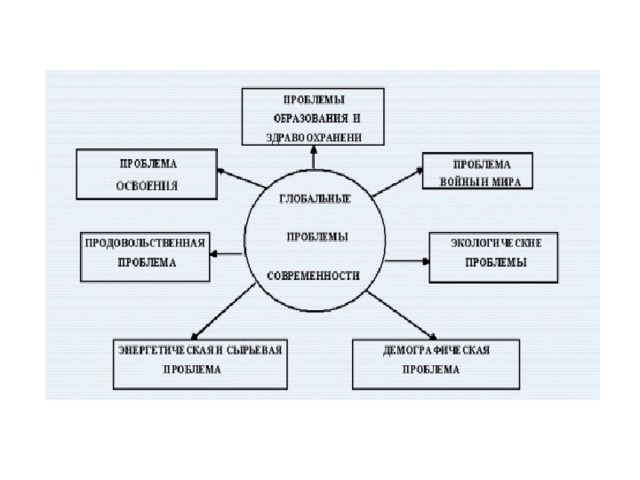 * Опасными для человечества являются политические проблемы ; мира, войны, гонки вооружений; решения региональных религиозных и военно-политических конфликтов. * Экологические, демографические и социальные проблемы требуют для своего решения значительных средств. * Наибольших успехов человечество достигло в решении глобальных экономических проблем - сырьевой и энергетической . * В некоторых регионах обострилась продовольственная проблема . * Все большую актуальность приобретают межотраслевые проблемы освоение Мирового океана и мирного освоения космоса .