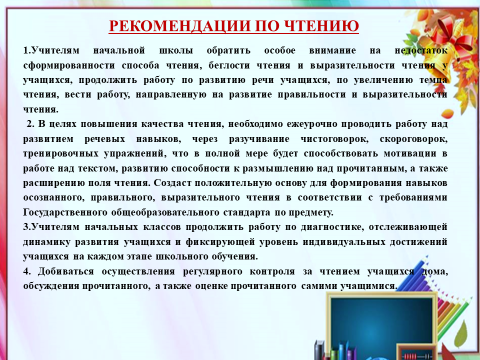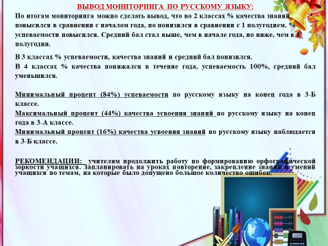 На основании вышеизложенного были сделаны соответствующие выводы, даны рекомендации по формированию орфографической зоркости, развитию вычислительных навыков и логического мышления у наших учащихся.