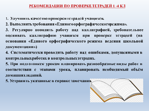 Учитывая результаты проверки, изложенные в справке, в целях улучшения уровня были даны соответствующие рекомендации: (на экране)