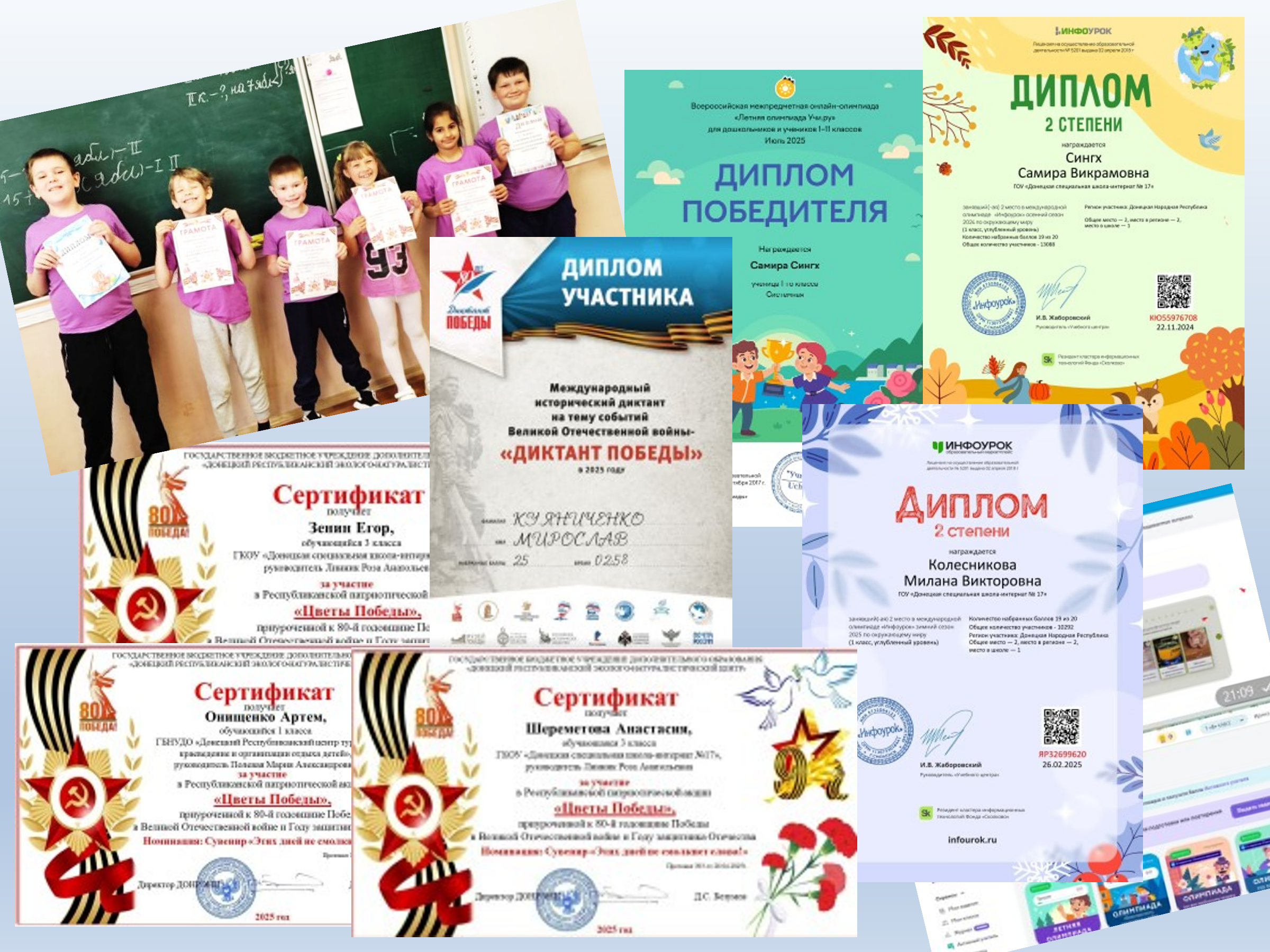 Олимпиадах на учи.ру, инфоуроке: «Безопасный интеренет», «По финансовой грамотности», «Безопасность начинается с тебя» и других, имеют сертификаты и дипломы.