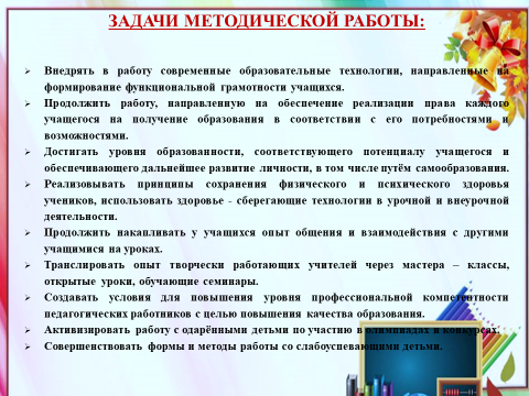 ОСНОВНЫЕ задачи методической работы: ( на экране)
