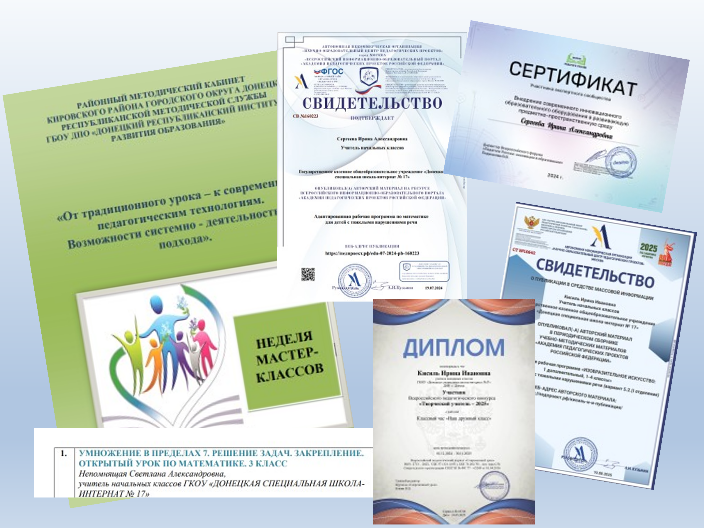 Заслуживают похвалы учителя, которые регулярно принимали участия в вебинарах, публиковали свои методические материалы на различных сайтах: «Знанио», «МультиУрок», «Российское образование», «Планета педагогов», «Современный урок», «Инфоурок», «Видеоурок» - Кисиль И.И., Сергеева И.А., Хоменко М.И.,