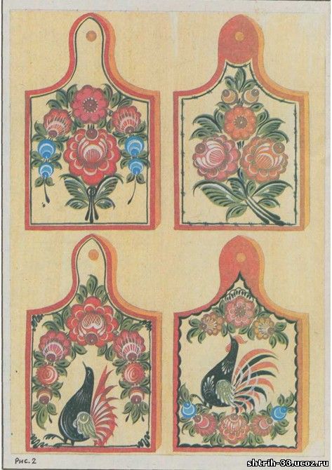Варианты росписи городецких разделочных досок.