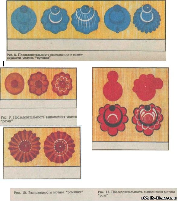 Последовательность выполнения бубенчика, купавки, розана