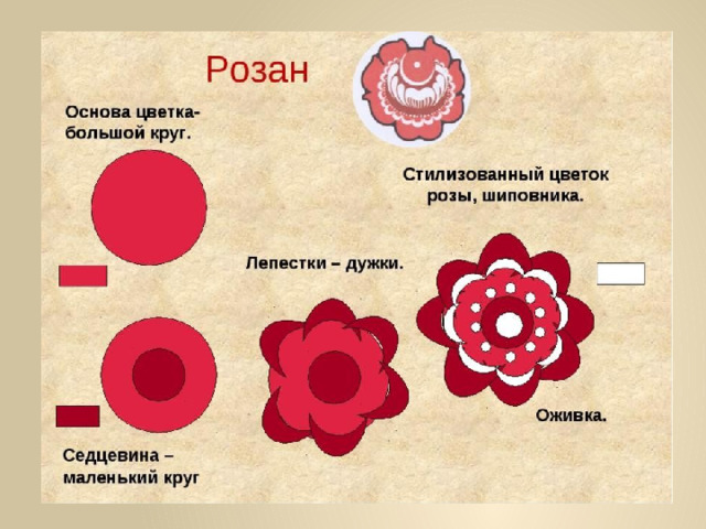 Основа городецкой росписи – волшебный цветок.