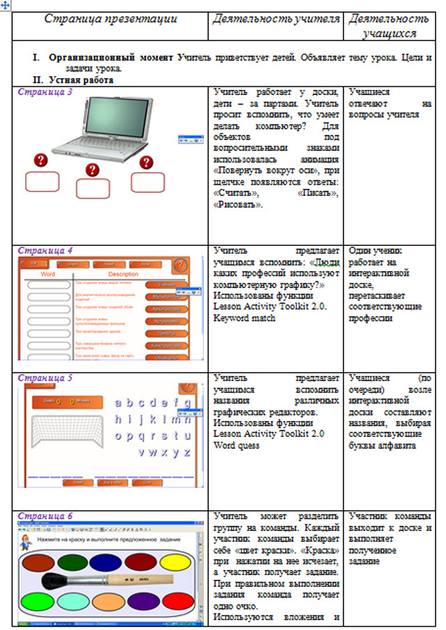 Оборудование: интерактивная доска SmartBoard, программа Smart Notebook 10.