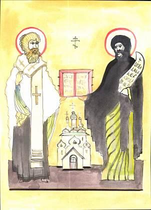Кири́лл (в миру Константи́н по прозвищу Фило́соф, 827—869, Рим) и Мефо́дий (в миру Михаи́л; 815—885)