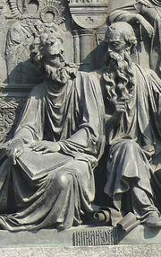 Кирилл и Мефодий на Памятнике «1000-летие России» в Великом Новгороде