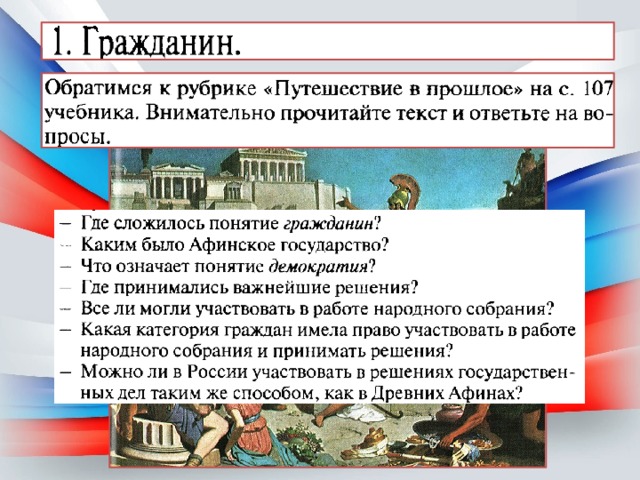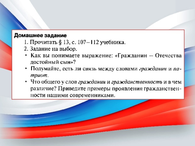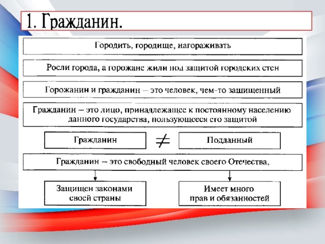 Презентация к уроку "Гражданин России" для 5 класса по "Поурочные разоаботки по обществознанию к учебнику Боголюбова" Сорокиной Е.Н., содержит интересные факты, понятия о гражданине, его обязанностях и об обывателе.