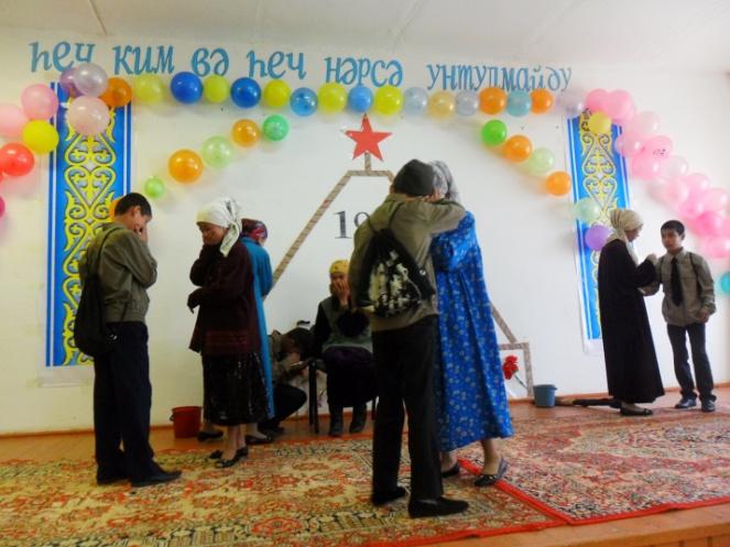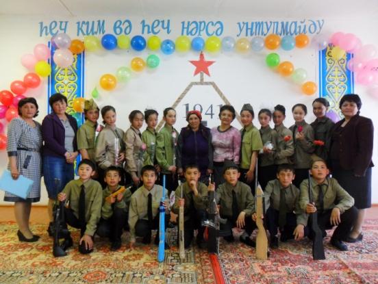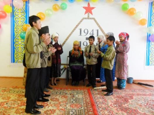 Елип барғучи Токаева Азиза: Улуқ Вәтән уруши 1366164 қазақстанлиқлар қатнашти. Шу урушқа миллионлиған Кеңәш хәлқи билән бирликтә бизниң жутимиз ширғуран оғланлар атланди. Атап ейтқанда: Қамаев Манап, Дуганов Қамә, Наненов Қозыбай, Абдуллаев Ибрайим, Әдилбеков Анайәт, Азнабакиев Басит, Азнабакиев Важит, Нуғманов Дамен, Муратов Мурадил, Ахметов Авут в.б.