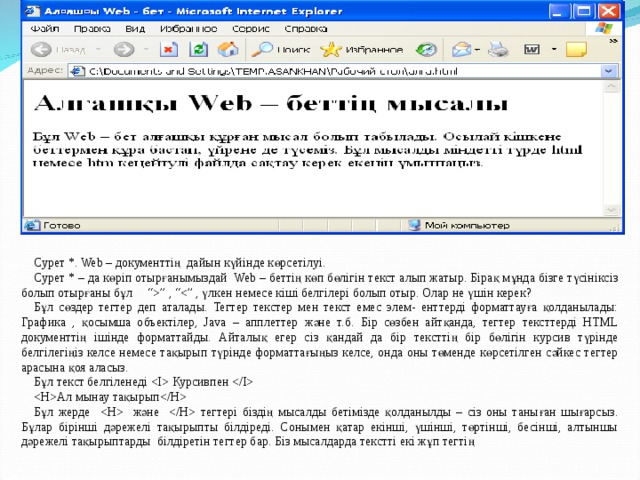 Сурет *. Web – документтің дайын күйінде көрсетілуі.