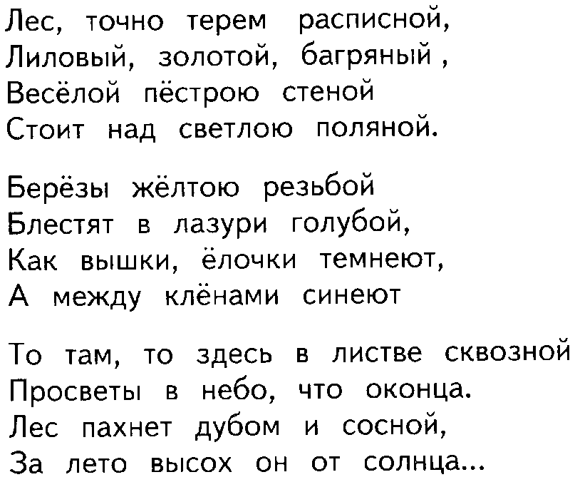 | Терем расписной, лиловый, золотой, багряный | Лес, точно терем |