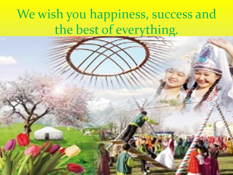 You`ve got lots of flowers now. Work in groups. Take these posters and make a holiday card on Nauryz day for our guests. Slide 21.