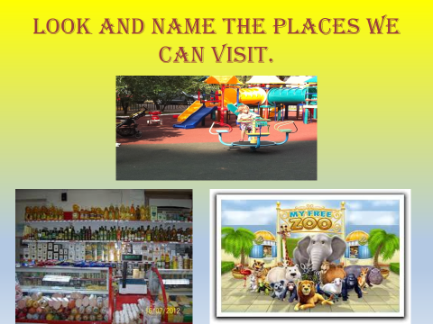 Look and name the places we can visit. For each answer you`ll get a flower. Slide 4