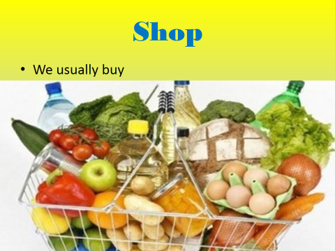 So, our travelling is not finished. And we are hungry. Let` s go to the shop and buy what you `d like. But before it listen to the dialogue in the shop. Slide 12.