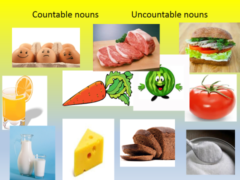 Ad now let`s divide the food into countable and uncountable .Slide 11.