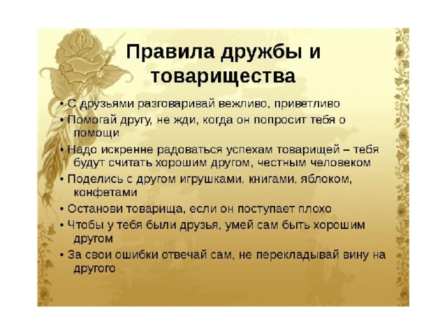 3. Совместно составить правила дружбы и товарищества для учащихся 5Я класса.