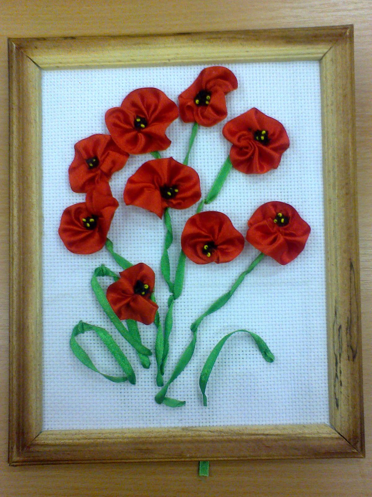 Вышивка маков атласными лентами