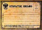 В России открытые письма были введены в обращение 1 января 1872года. Они были не иллюстрированными. На одной стороне открытки писали адрес и наклеивалась марка, здесь также было напечатано правило: "На этой стороне кроме адреса не дозволяется ничего другого писать". Вторая сторона предназначалась для письменного сообщения, на ней помещалась надпись: "Почтовое управление за содержание письма не отвечает".