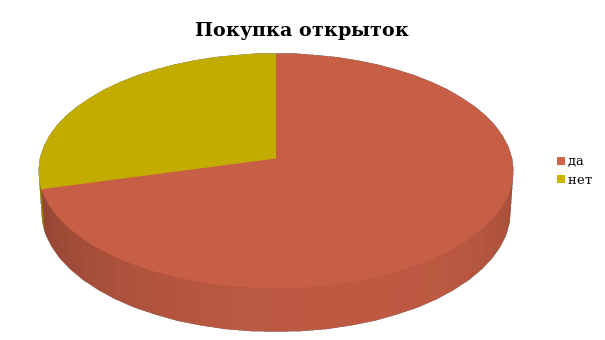 из которого, мы узнали, что открытки покупают 17 семей, что составило 71%.