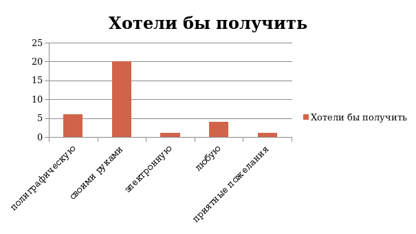 Какую открытку Вы хотели бы получить в подарок?( полиграфическую, своими руками, электронную)