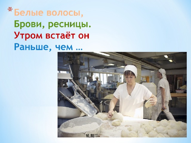 - Цвет свой особый У каждого дела. Вот перед вами Булочник …