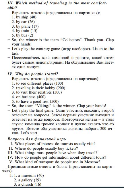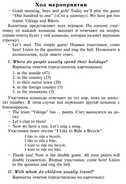 Методическая разработка урока «Путешествие»