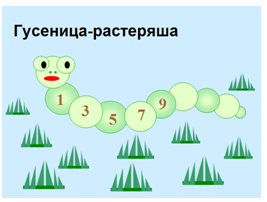 | Гусеница-Растеряша | Увидеть закономерность и добавить цифры для получения приза. | Ваша задача вставить последующие цифры